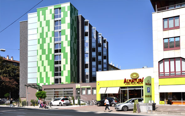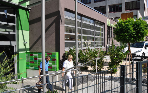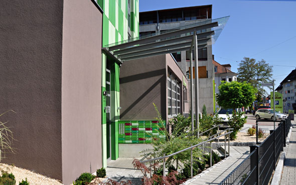 Kommt der Innenbereich als Standort für einen Aufzug nicht infrage, kann der Aufzug außen vor die Fassade vorgestellt werden. Ein Schachtgerüst außerhalb des Gebäudes ist eine häufig praktizierte gute Lösung, bei der ein barrierefreier Zugang über die Außenwand erreicht wird. Im besten Fall bedarf es keiner Grundrissänderung. Durchbrüche der Fassade ermöglichen den Zugang zu jedem Stockwerk «von außen».