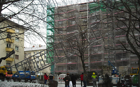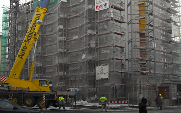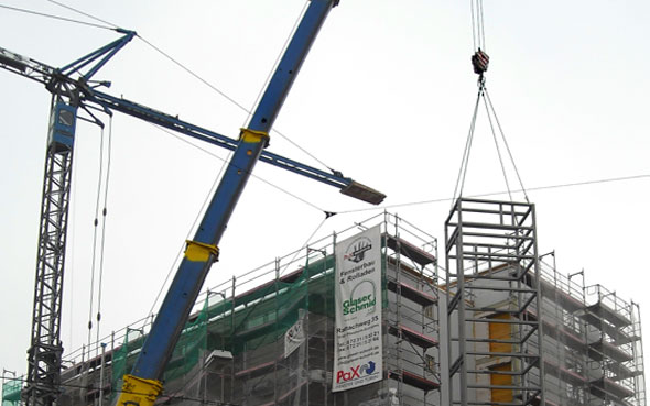 Nachträglicher Anbau eines Aufzuges außen am Hochhaus