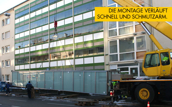 Für die Bewohner bedeutet es, eine kürzere Bauphase und ihr Eingangsbereich am Haus bleibt während der Baumaßnahme frei zugängig und wird beispielsweise nicht durch ein Gerüst blockiert.