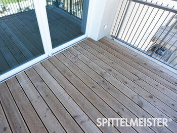 Holz und WPC-Kunststoffdielen verarbeiten wir nur auf Ihren ausdrücklichen Wunsch als Balkonbelag. Aufgrund jahrelanger Erfahrung können wir zu diesen beiden Balkonbelägen nur mit Einschränkung raten. Ein Holzbelag ist nur anfangs schön und danach deutlich pflegeintensiver. Spreißel sind für Mensch und Tier ein Problem.