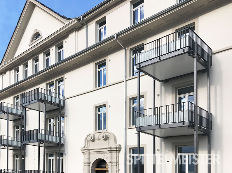 Um die Auflagen vom Denkmalamt zu erfüllen, kommen fast ausnahmslos Balkongeländer aus Stahl zum Einsatz. Sie sind zeitgemäß und passen hervorragend zu historischen Gebäuden.