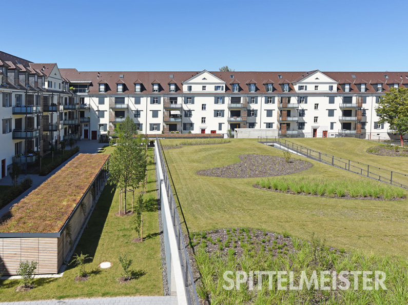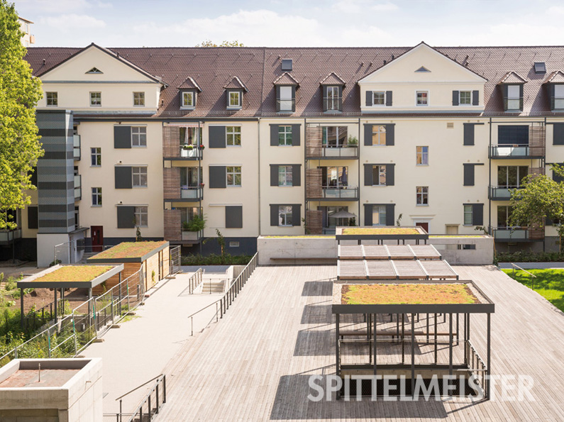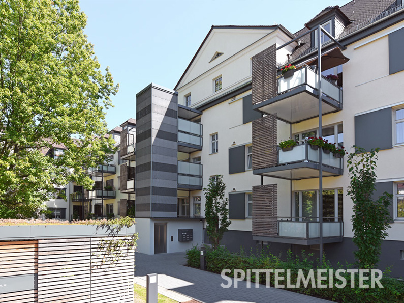 Mustergültiger Balkonübertritt an einem denkmalgeschützten Gebäude. Spittelmeister® Systembalkone sind aufgrund der «sauberen» Trennung (thermisch und Abdichtung) der Balkone vom eigentlichen Baukörper und mit der tieferliegenden, wasserführenden Schicht im Balkon (einer Aluwanne) perfekt für die Nachrüstung an Altbauten geeignet. Mehr über barrierefreie und barrierearme Balkonübertritte.