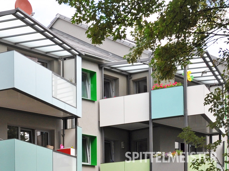 Unsere Balkone im Loggia-Stil sind zu einer Seite offen und zu drei Seiten von Wänden umschlossen. Diese Wände bauen wir aus Holzlamellen oder Kunststoffplatten, wie HPL oder Trespa – Balkonverkleidung. Bzw. wenn sie Glas wünschen, als Balkonverglasung. Eine Loggia ist immer überdacht.