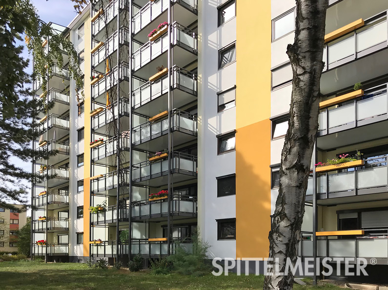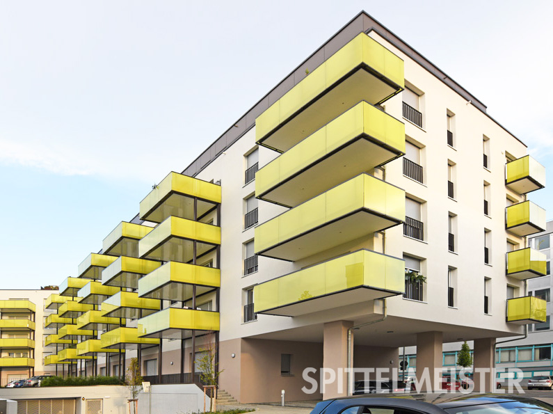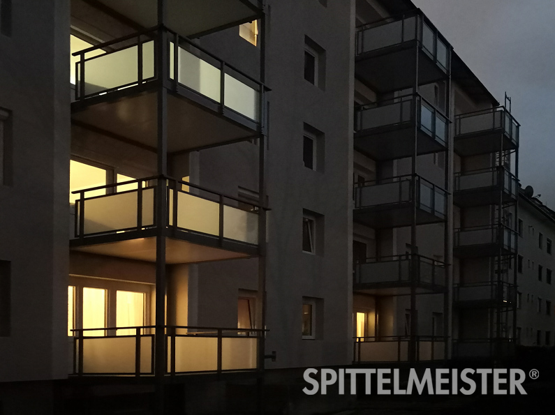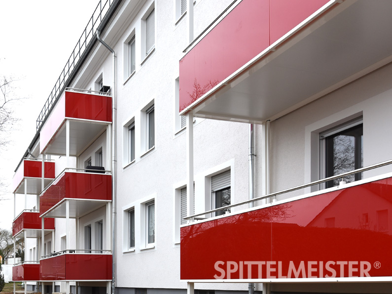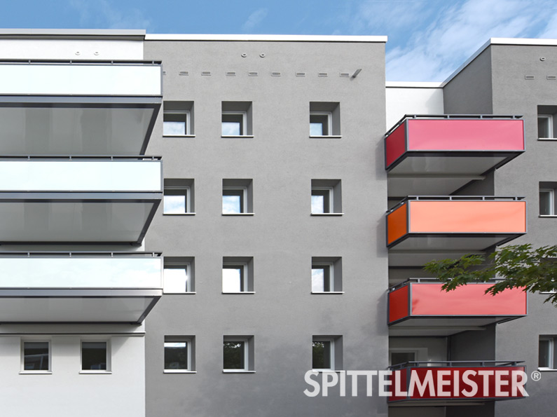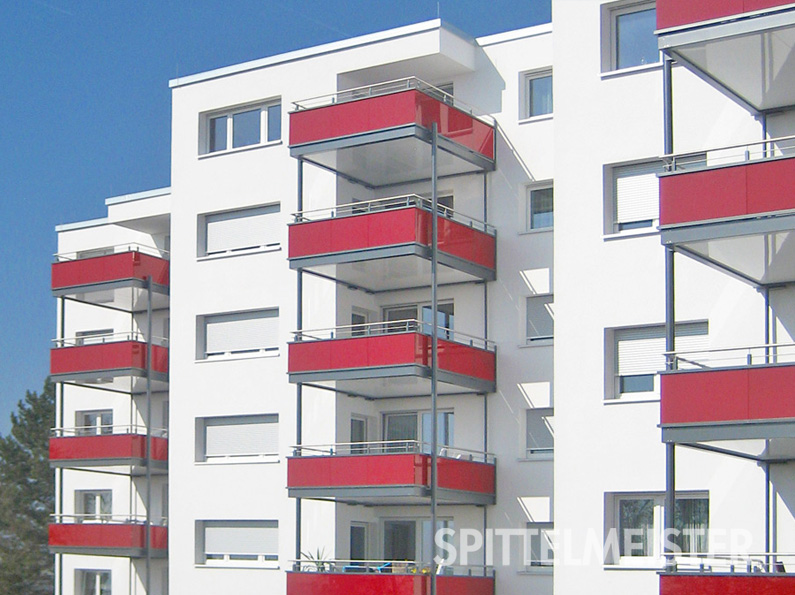 - Balkongeländer aus Kunststoffen, wie Trespa und andere HPL-Platten