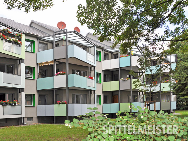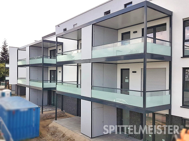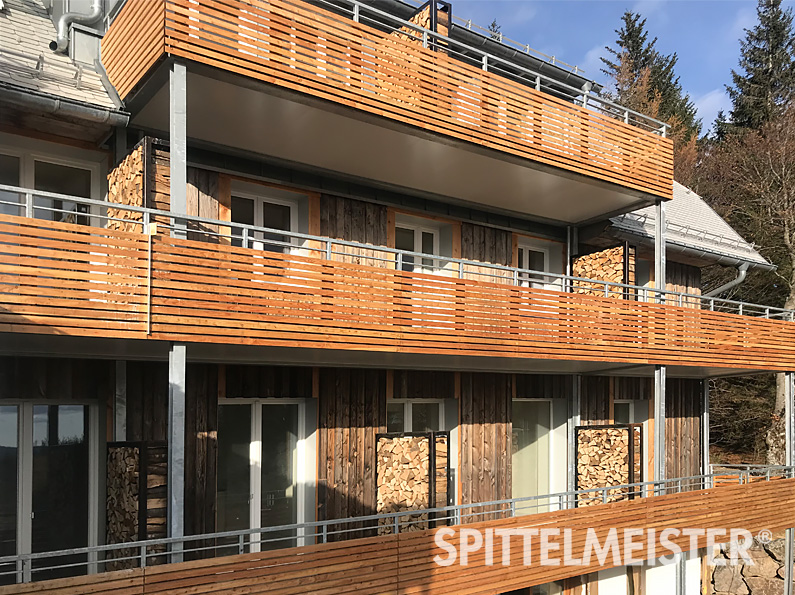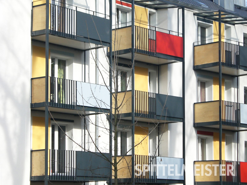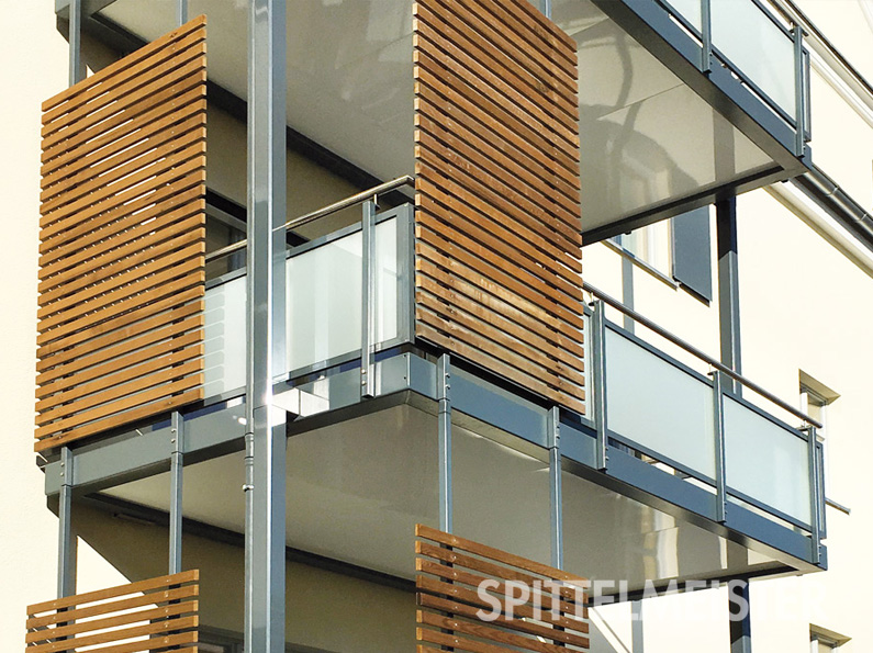 Die Materialkombinationen ermöglichen besondere und individuelle Balkongeländer. Bei Mehrfamilienhäusern schafft man eine attraktive Unterscheidung und Auflockerung der Gebäudefront. Es muss doch nicht immer alles gleich aussehen!