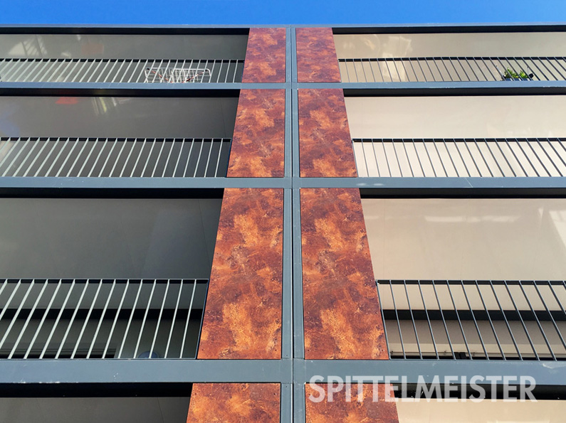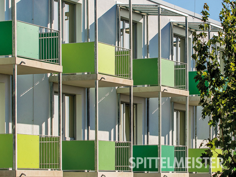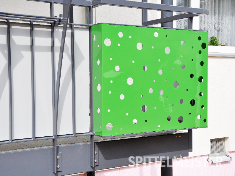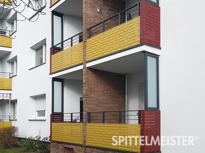 - Balkongeländer aus Kunststoffen, wie Trespa und andere HPL-Platten